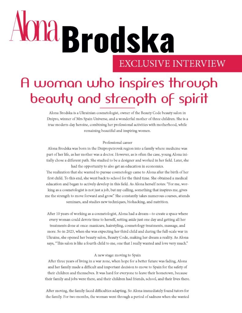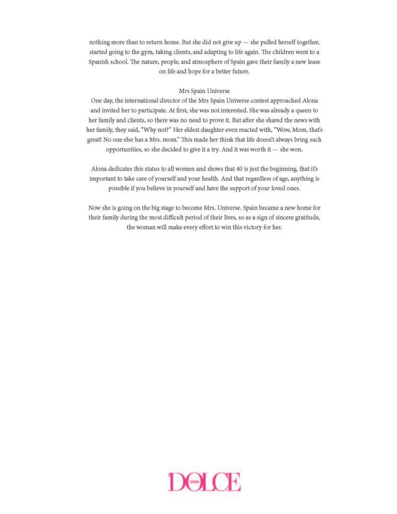Dnipro, winner of Mrs Spain Universe, and a wonderful mother of three children. She is a